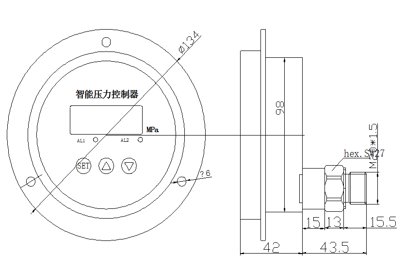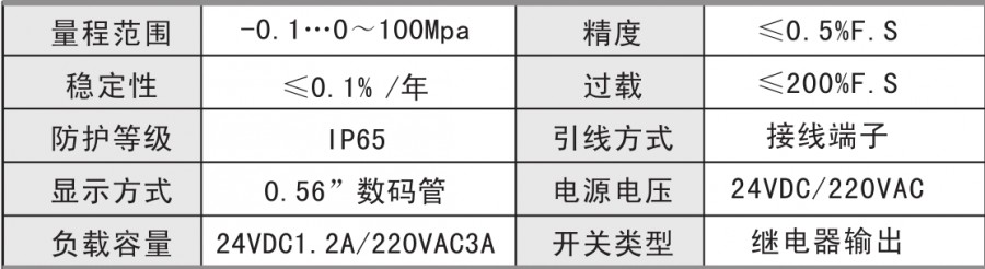 PYK104是集壓力測量、顯示、輸出、控制于一體的智能數(shù)字壓力測控產(chǎn)品。不銹鋼接頭、擴散硅壓力芯體、全數(shù)字電路板組成,顯示直觀,操作簡單,安全可靠,開關(guān)點現(xiàn)場設(shè)置。廣泛應(yīng)用于水電、自來水,石油、化工、機械、液壓等行業(yè),對流體介質(zhì)的壓力進行測量和控制。