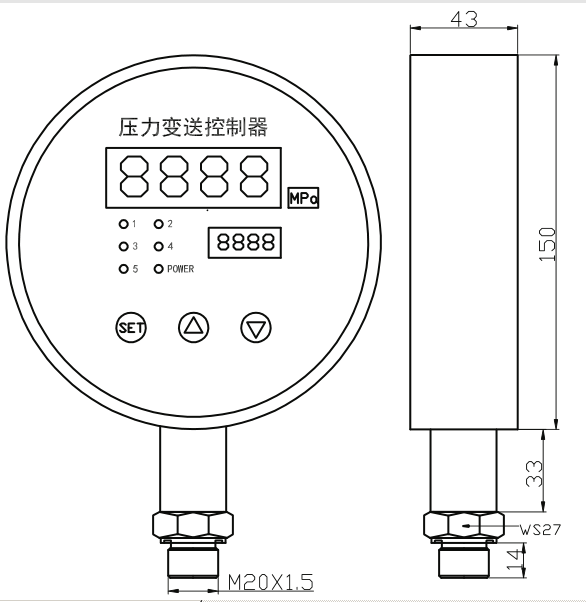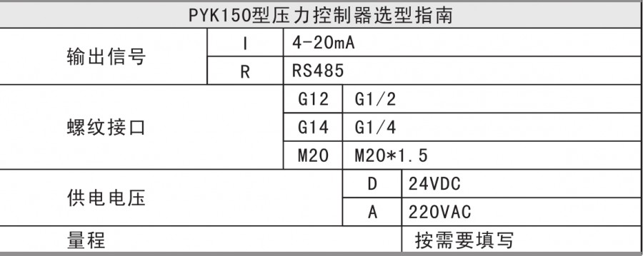 PYK150智能壓力控制器是集壓力測(cè)量、顯示、輸出、五路控制于一體的智能數(shù)字壓力測(cè)控產(chǎn)品。不銹鋼接頭、擴(kuò)散硅壓力芯體、全數(shù)字電路板組成,顯示直觀,操作簡(jiǎn)單,安全可靠,開(kāi)關(guān)點(diǎn)現(xiàn)場(chǎng)設(shè)置。廣泛應(yīng)用于水電、自來(lái)水,石油、化工、機(jī)械、液壓等行業(yè),對(duì)流體介質(zhì)的壓力進(jìn)行測(cè)量和控制,并可遠(yuǎn)傳輸出(4-20mA)及RS485組網(wǎng)。